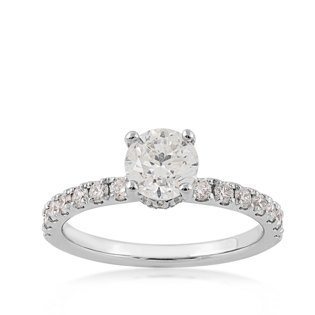 14KW 1 1/2 CTTW COLLARED HALO – 1 CT round center