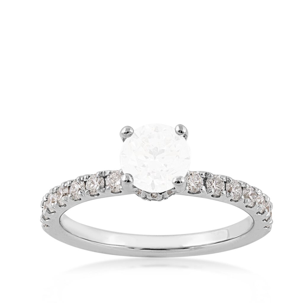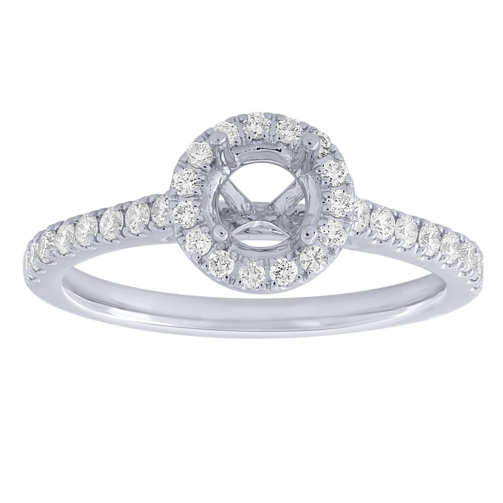1/3 cttw 14KW round halo – 1/5 ct center semi mount engagement