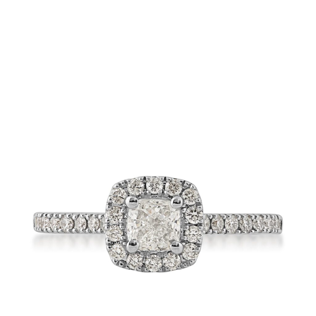 7/8 cttw 14KW cushion halo engagement – with 1/2 ct center