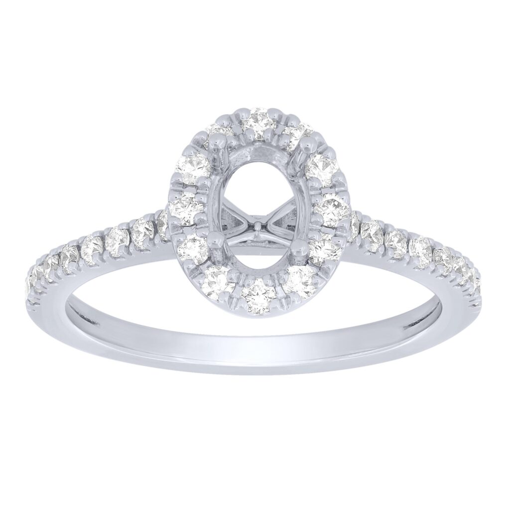 1/3 cttw 14KW oval halo – 1/2 ct center semi mount engagement