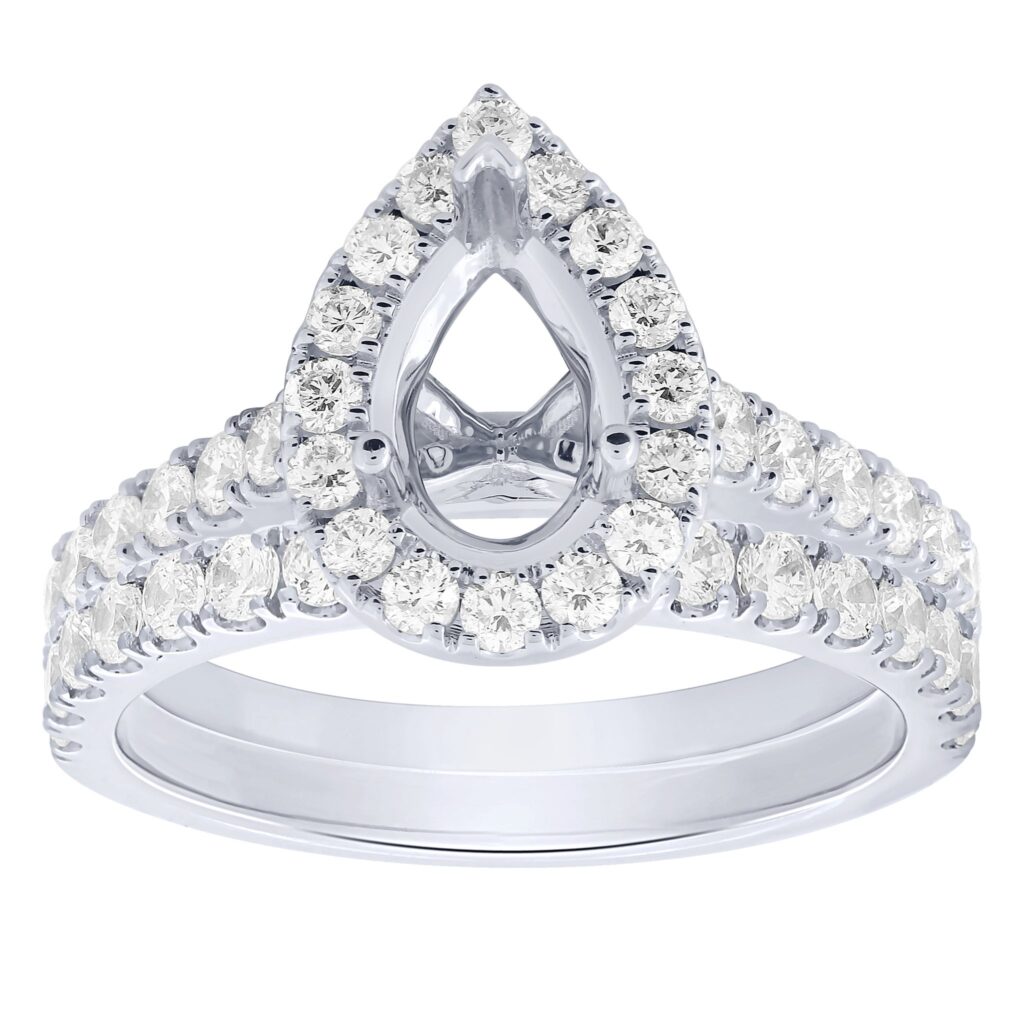 3/4 cttw 14KW pear halo – 1 ct center semi mount engagement