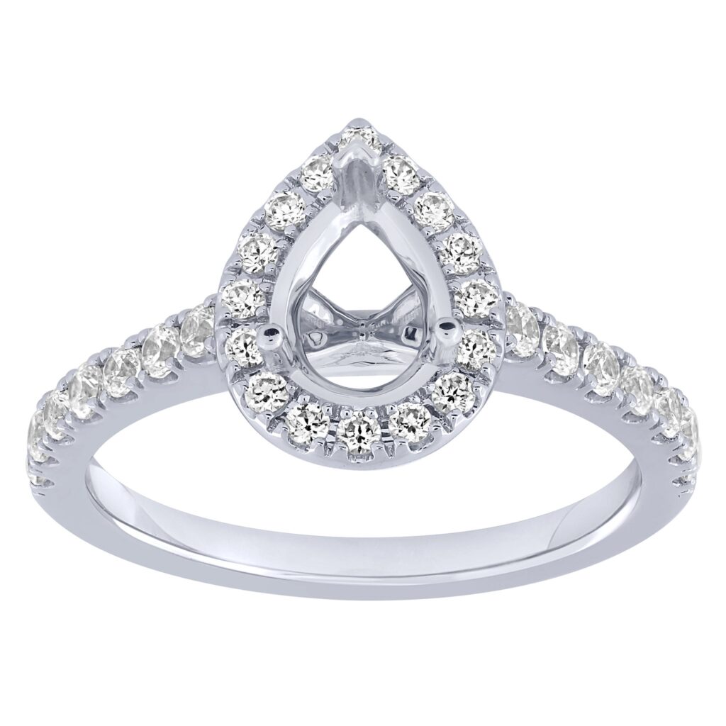 1/2 cttw 14KW pear halo – 3/4 ct center semi mount engagement
