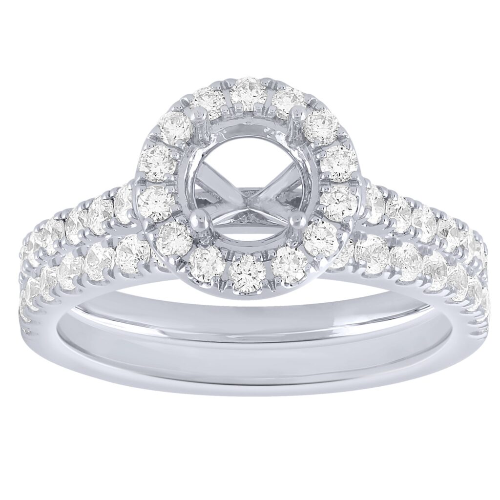 1 1/5 cttw 14KW round halo – 1 ct center semi mount set