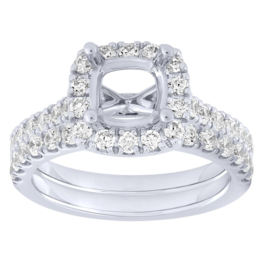 1 1/5 cttw 14KW cushion halo – 1 ct center semi mount set