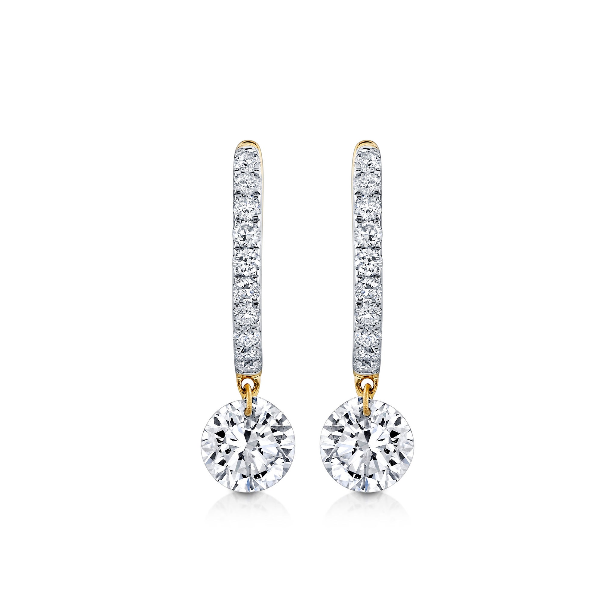 14KY 1 1/6 CTTW DRILLED LAB GROWN DIAMOND ROUND LEVERBACKS 1 dangling diamond leverback accented with diamonds