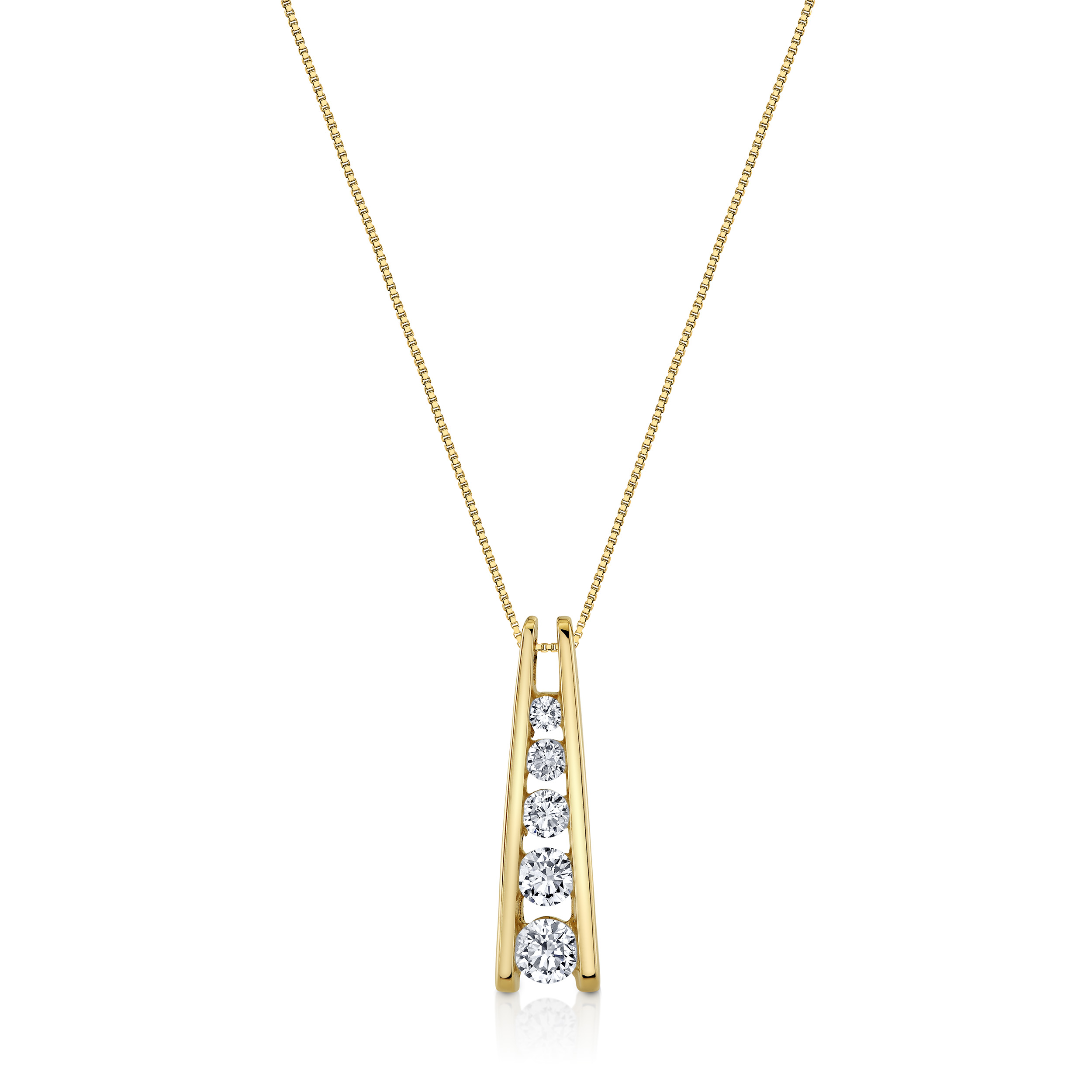 14KY 1 /2 CTTW Round 5 stone ladder pendant from the Sirena Collection. 18″ 14KY gold chain included