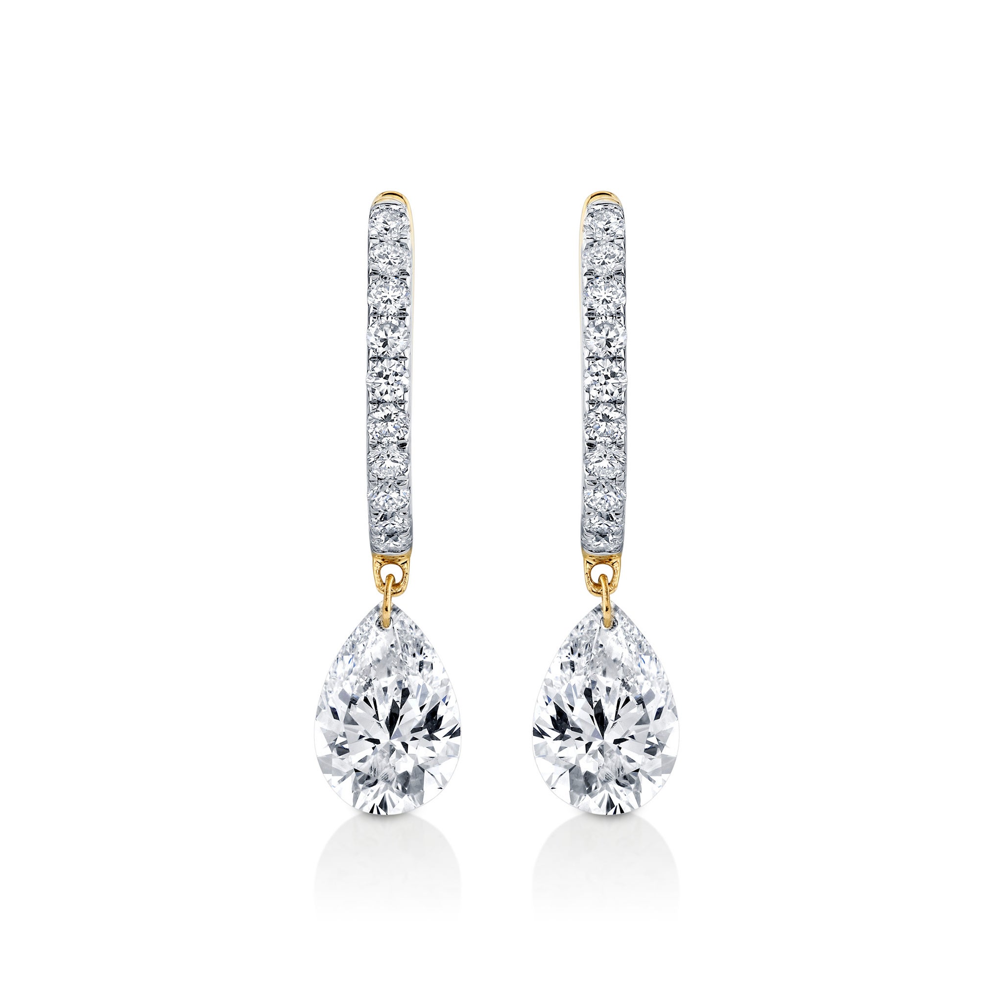 14KY 2 1/3 CTTW DRILLED LAB GROWN DIAMOND PEAR HOOPS 1 diamond huggie accented with diamonds