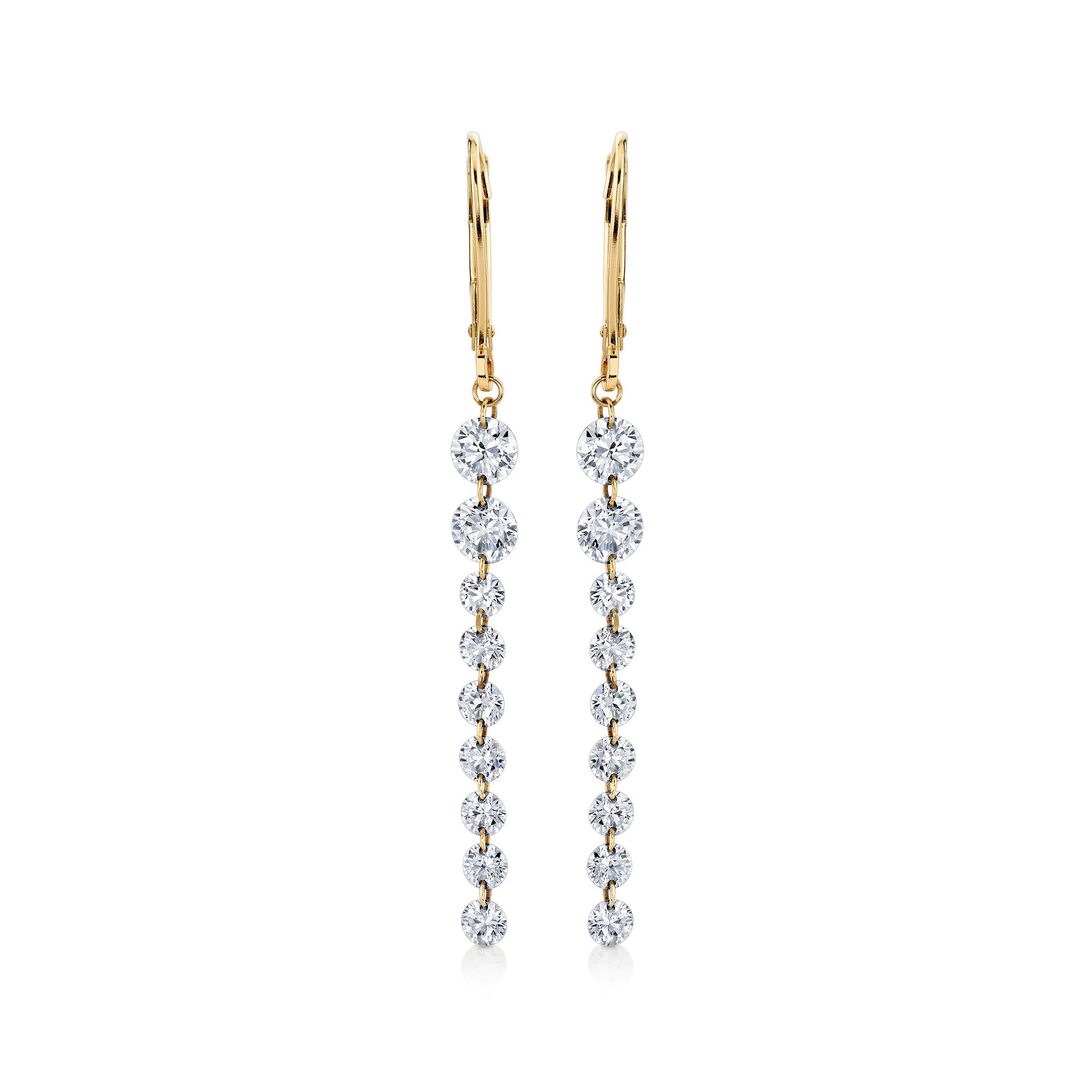 14KY 2 5/8 CTTW DRILLED LAB GROWN DIAMOND LINE EARRINGS 9 diamonds leverback