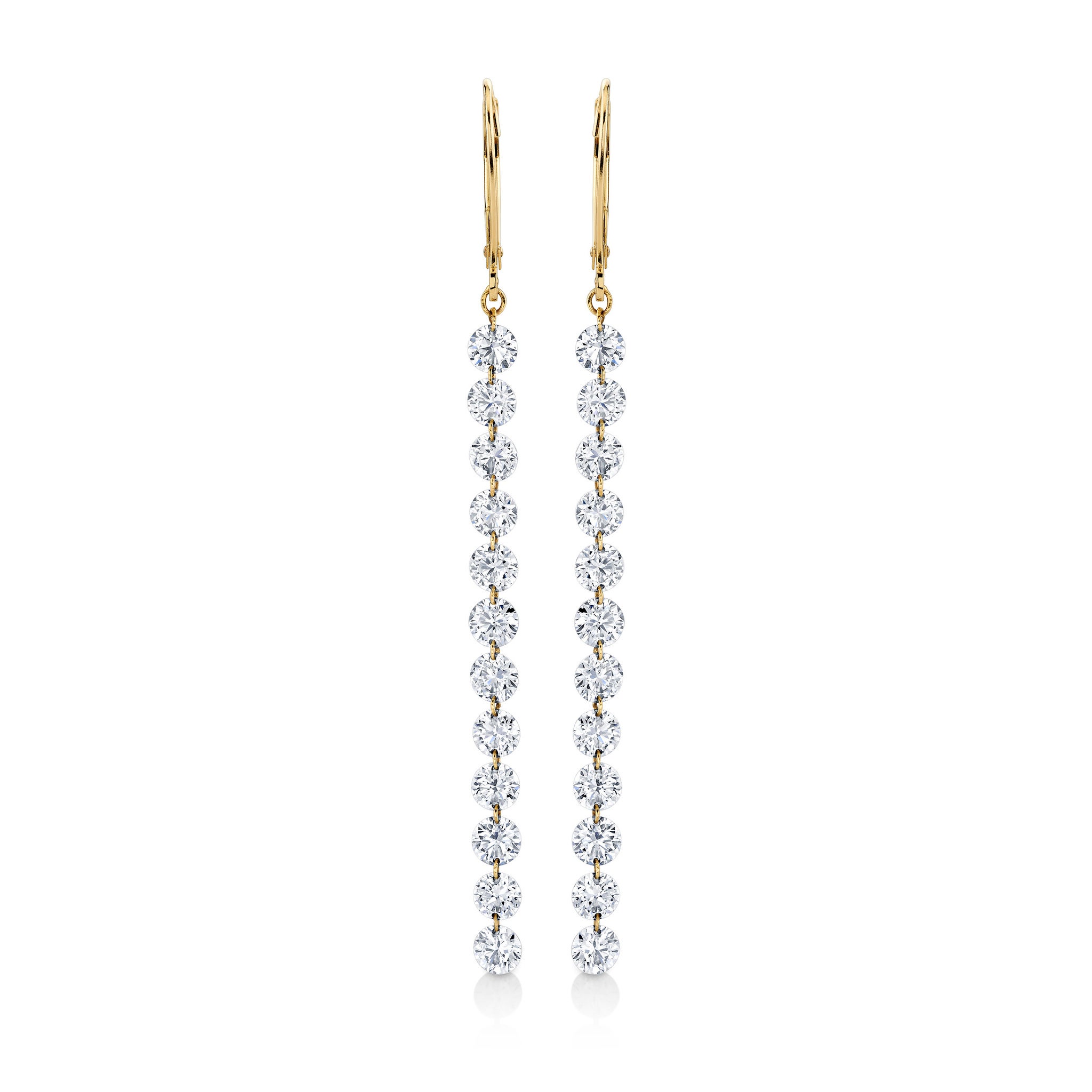 14KY 5 CTTW DRILLED LAB GROWN DIAMOND LINE EARRINGS 12 diamonds leverback