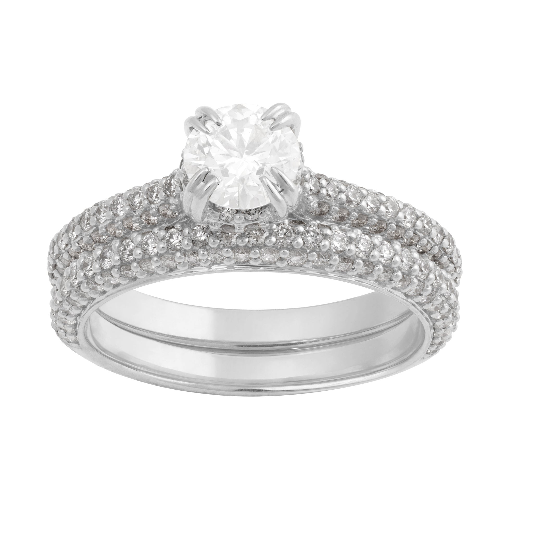 14KW 1.0 CTTW ROUND WEDDING SET BLANK 1/2 CT CENTER