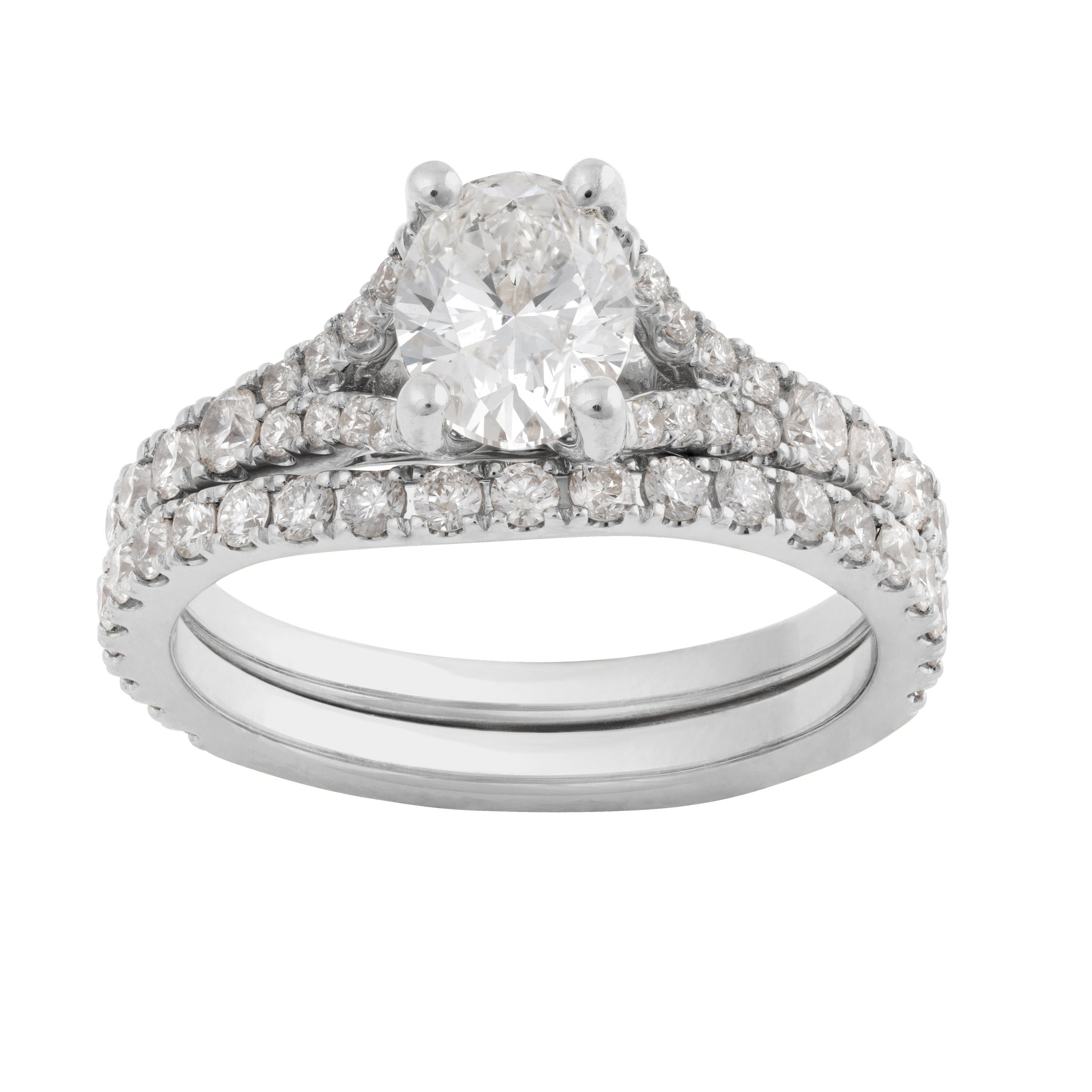 14KW 2.0 CTTW OVAL WEDDING SET 1.0 CT CENTER
