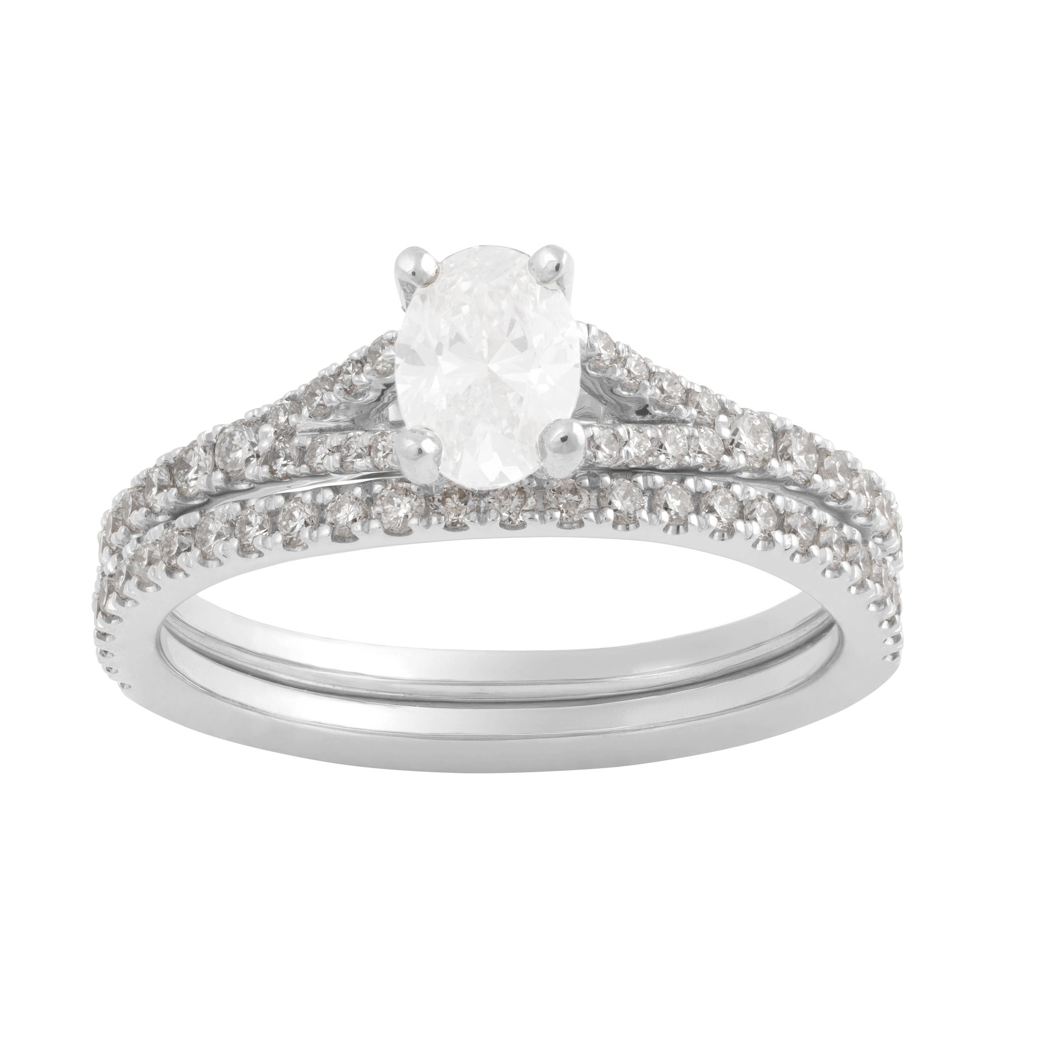 14KW 3/8 CTTW OVAL WEDDING SET BLANK 1/2 CT CENTER