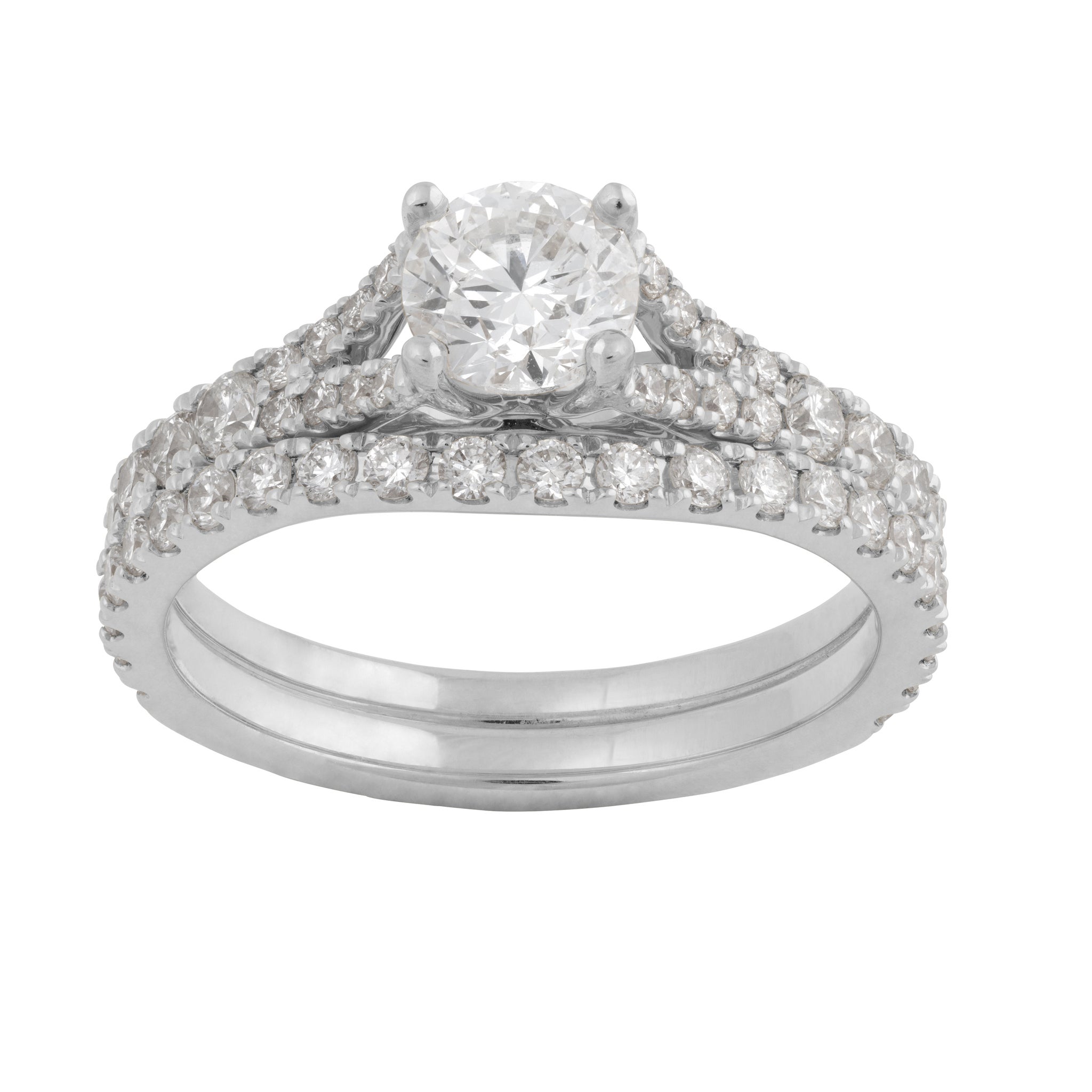 14KW 1 3/4 CTTW ROUND WEDDING SET 3/4 CT CENTER