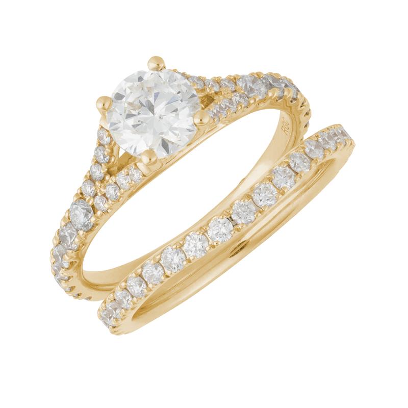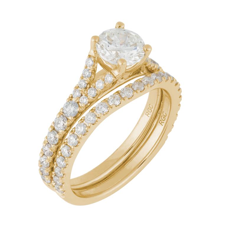 Home Shop Simply Diamonds Natural Diamonds Rings Engagement & Wedding Sets Simply Natural Cascade Yellow Gold ½ CT CENTER Cascade – Round Bridal Set