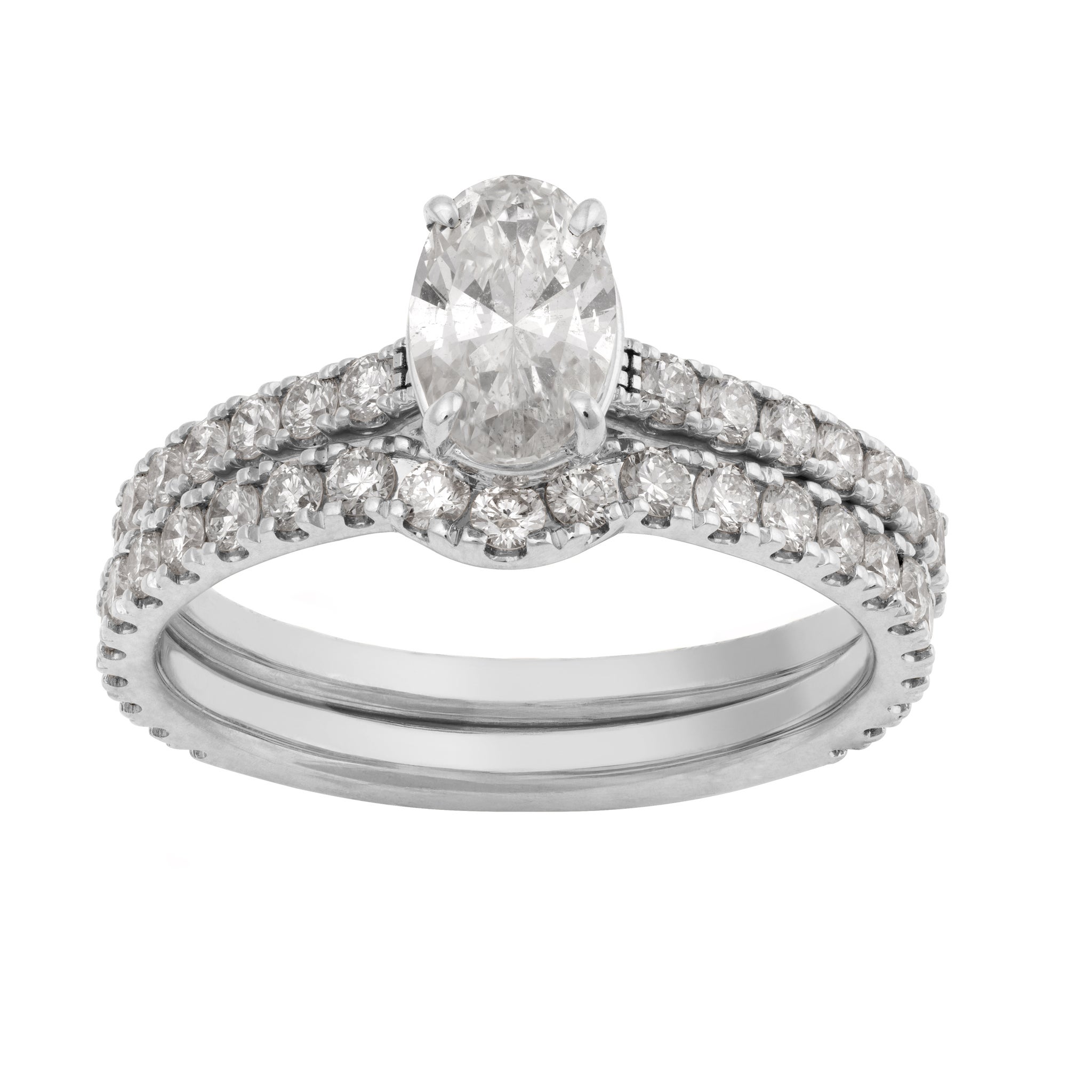 14KW 1 3/4 CTTW OVAL WEDDING SET 3/4 CT CENTER