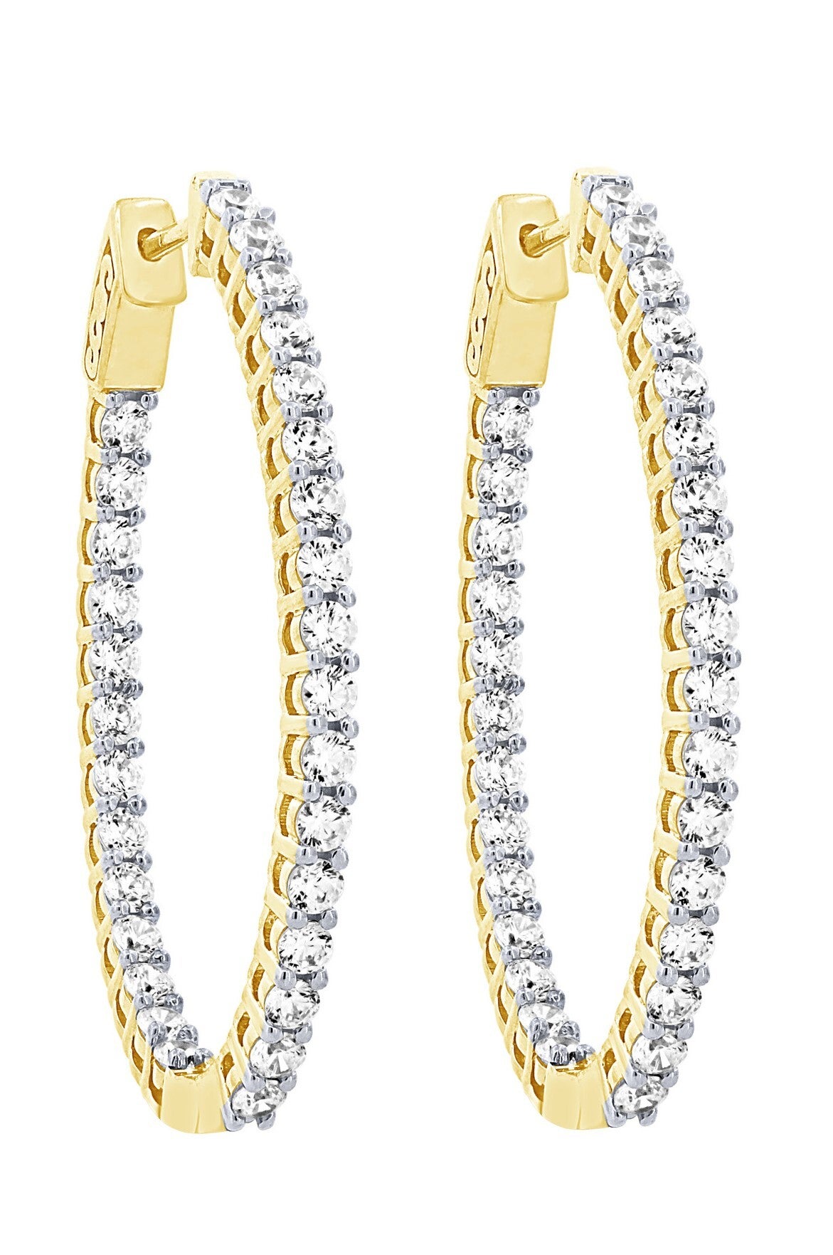 14KY 4 CTTW LAB GROWN DIAMONDS OVAL INSIDE OUTSIDE HOOP EARRINGS