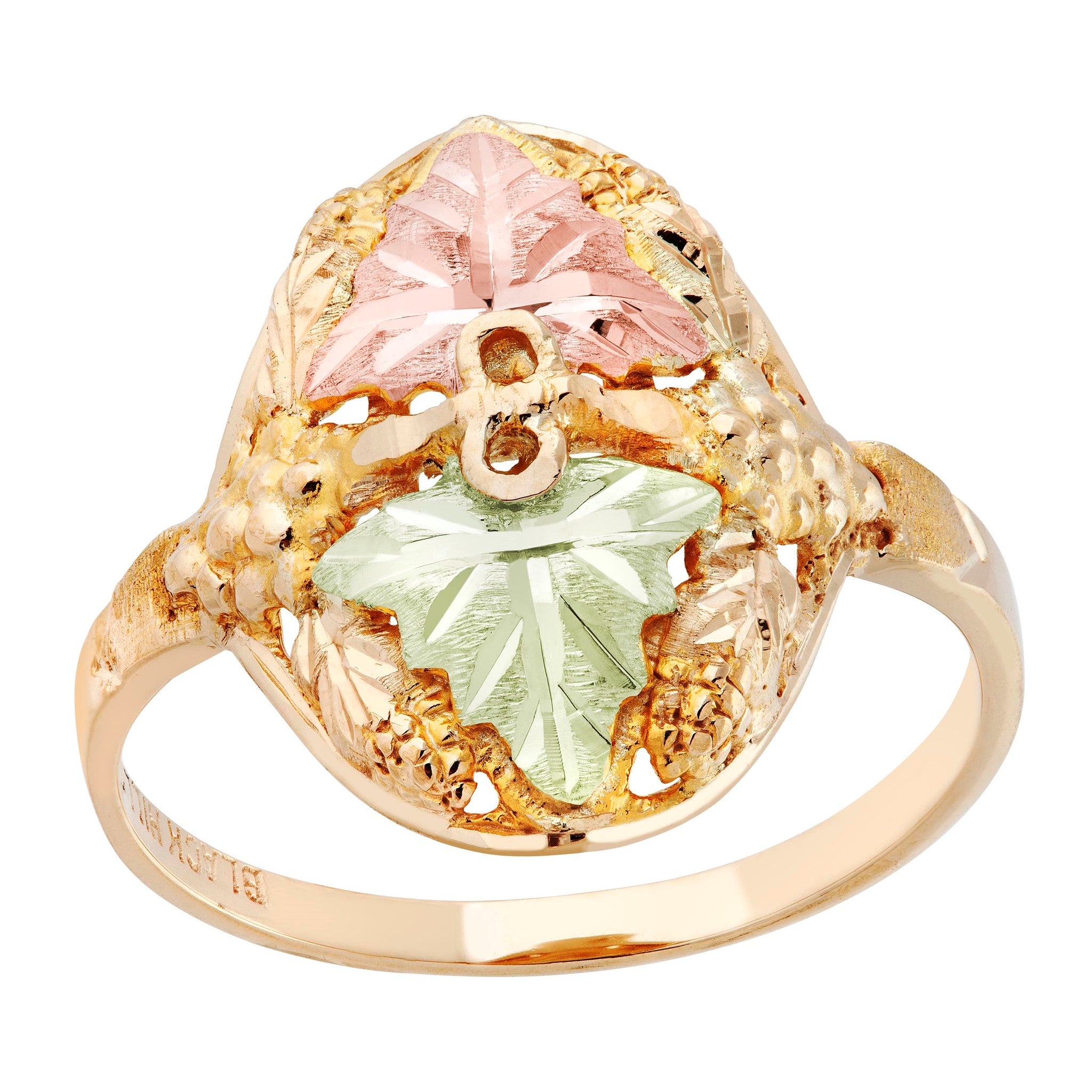 Black Hills Gold Classic Collection Ladies Ring, 10K Shank with Oval Frame, Grape Clusters and Vines, with (2) 12K Green and Rose Leaves