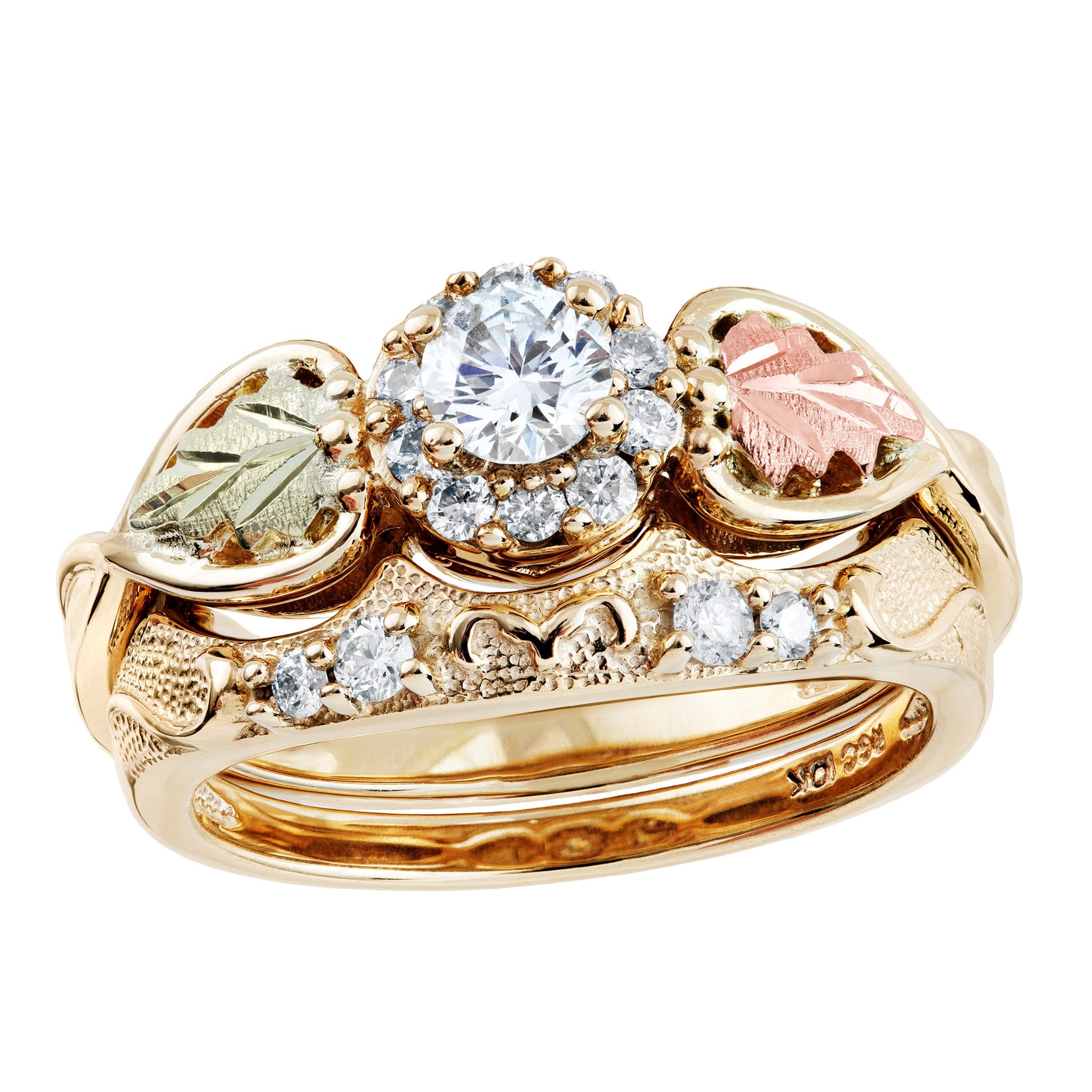 Black Hills Gold Ladies Diamond Wedding Band, 10K Sculpted Shank accented with 1/10TWT Round Diamonds