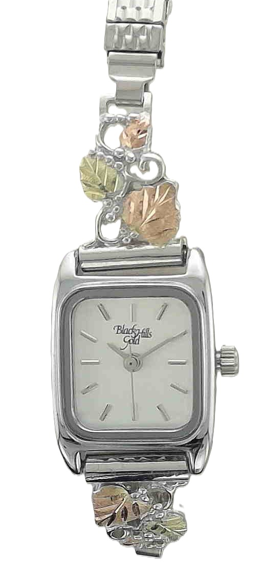 Oblong white watch face with Sterling Silver Black Hills Gold tip watchband MRL09284B