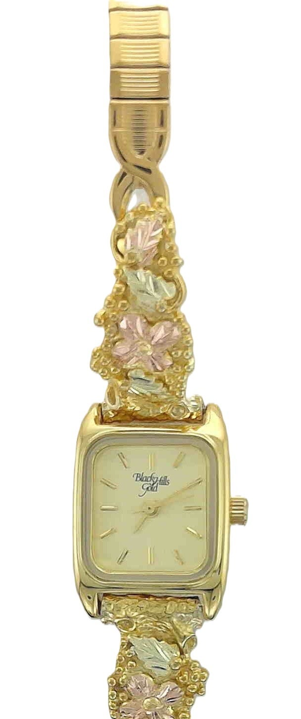 Oblong gold watch face with Black Hills Gold tip watchband G LLWB915