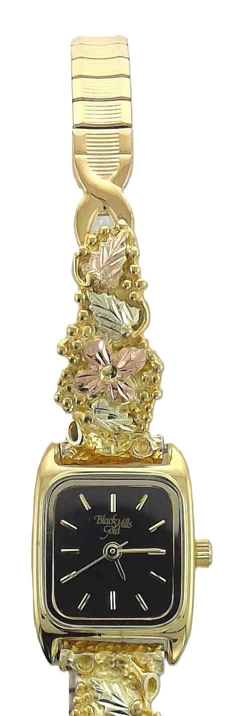Oblong black watch face with Black Hills Gold tip watchband G LLWB915