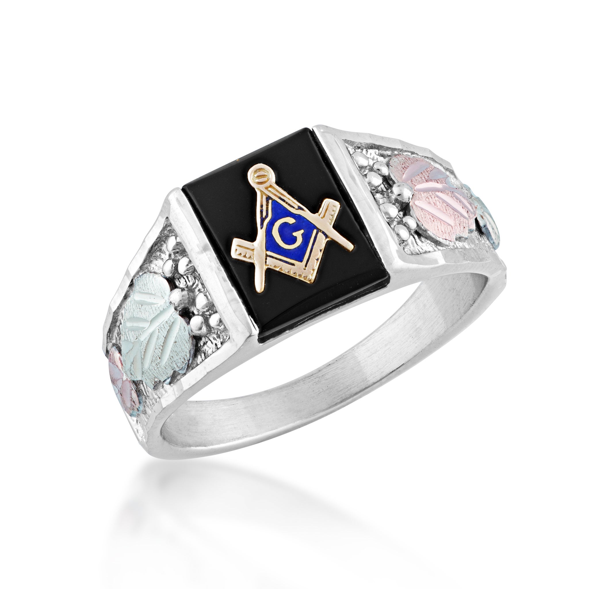 MR1525 M MASONIC BLK ONYX RING Size 10.5