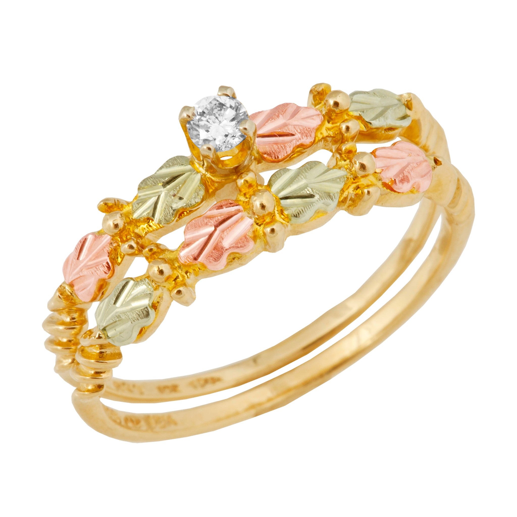 This Beautiful Ladies Straight Shank Diamond Wedding Set Is Expertly Crafted In 10K Yellow-Gold, And Features A Stunning .08Ct Rb Diamond With 10K Yellow-Gold Grapes Between Each Leaf, And Our Signature 12K Black Hills Gold Leaves In The Colors Pink & Green (8).