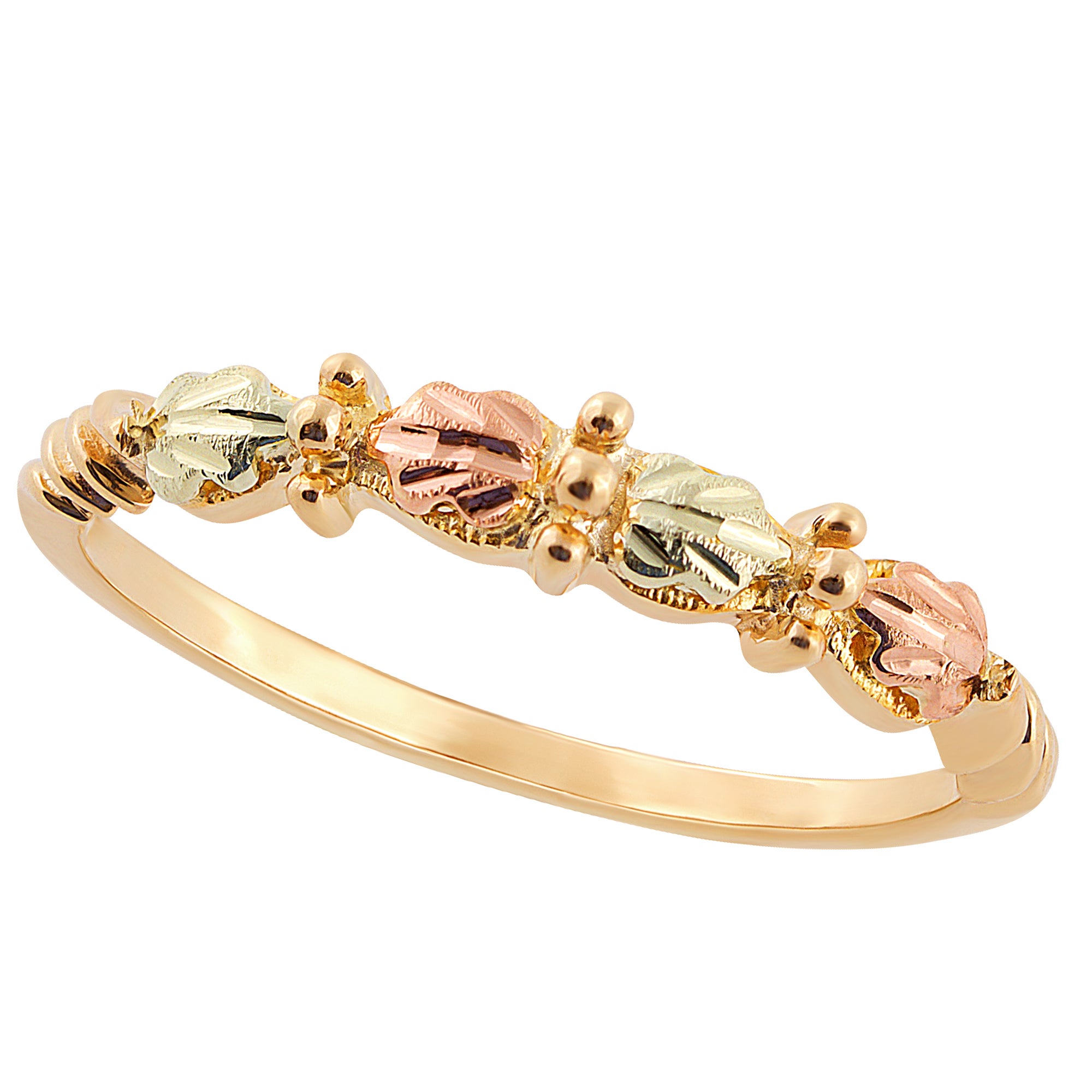 This Beautiful Ladies 10K Yellow-Gold Straight Shank Wedding Set Is Expertly Crafted In 10K Yellow-Gold Featuring 10K Yellow-Gold Grapes And Our Signature 12K Black Hills Gold Leaves In The Colors Pink & Green (4).