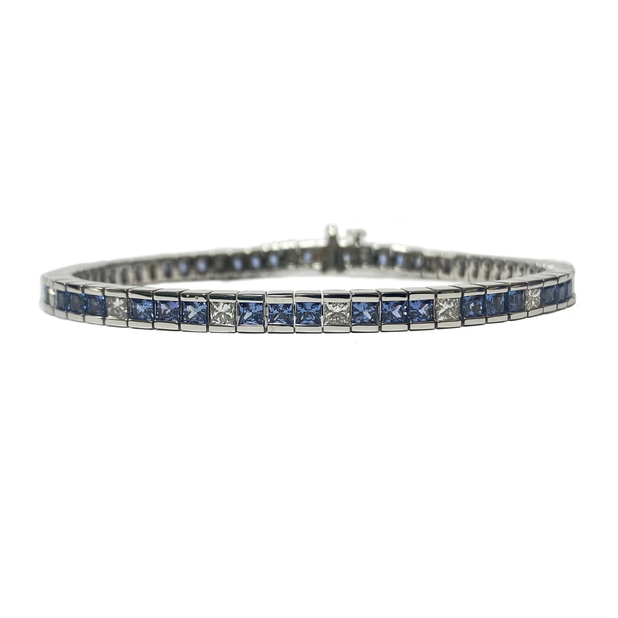 14KW 1 5/8 CTTW Diamond & 5 3/4 CTTW Yogo Sapphire Princess Cut 64 stone 7″ bracelet