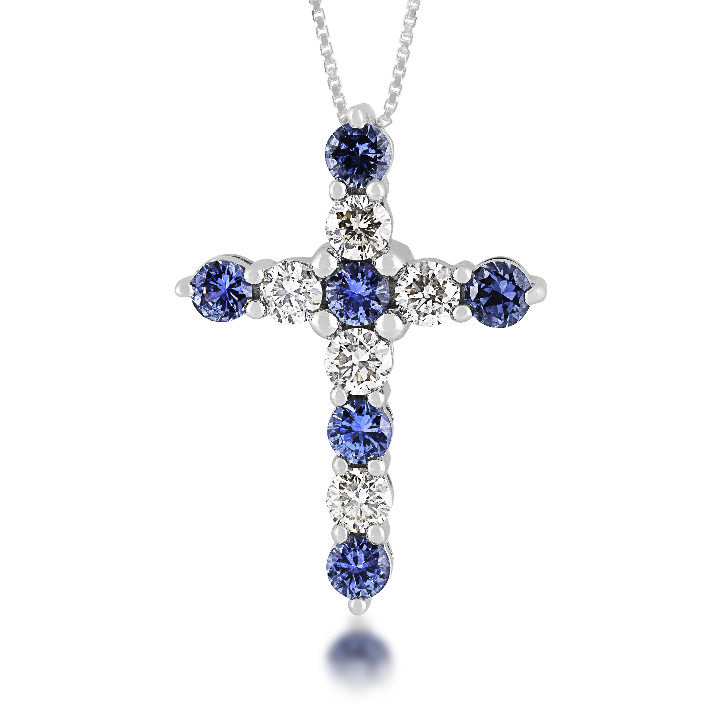 14KW 3/8 CTTW DIAMOND 3/4 CTTW YOGO SAPPHIRE CROSS PENDANT
